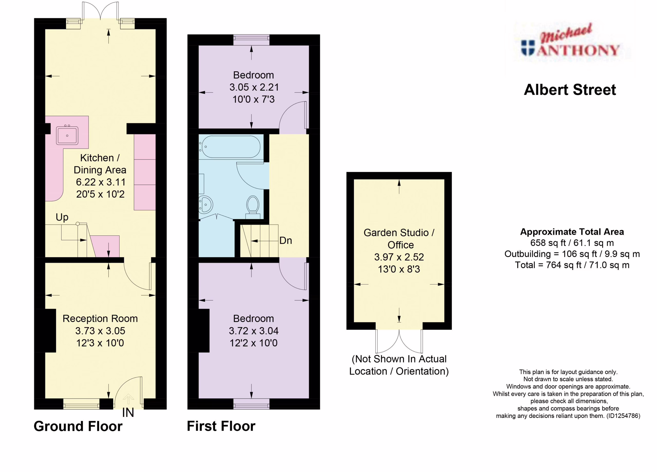 Laid to lawn with shingled area, timber studio with power and lighting.