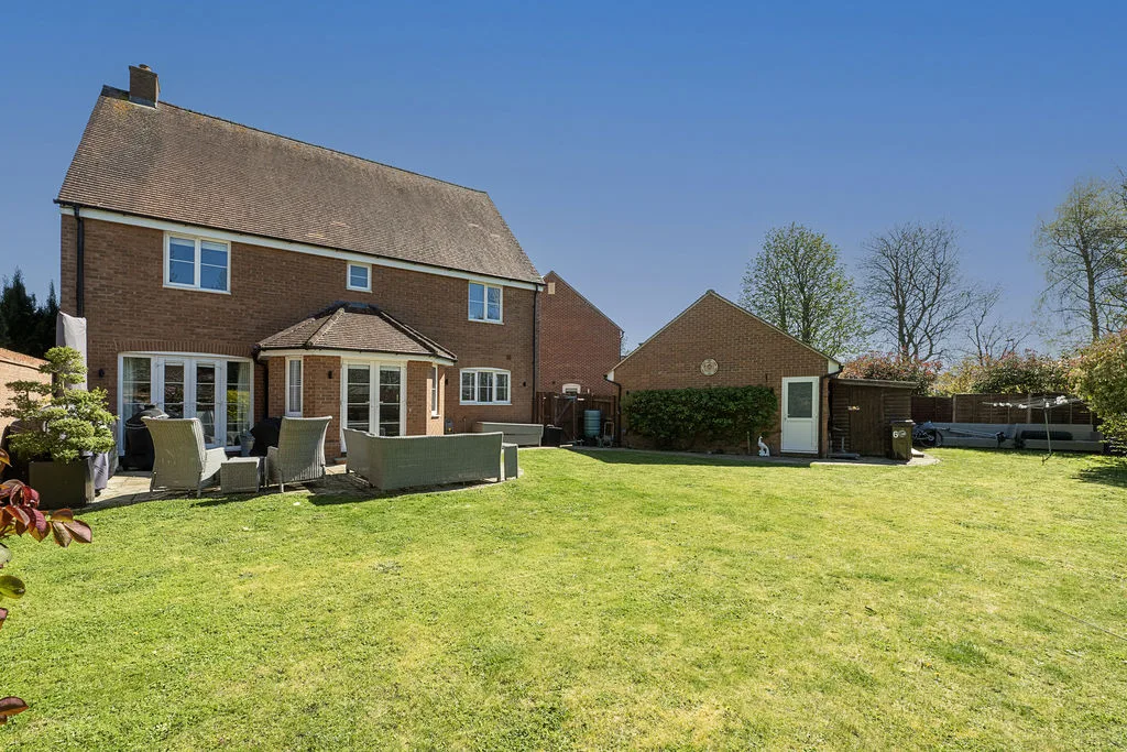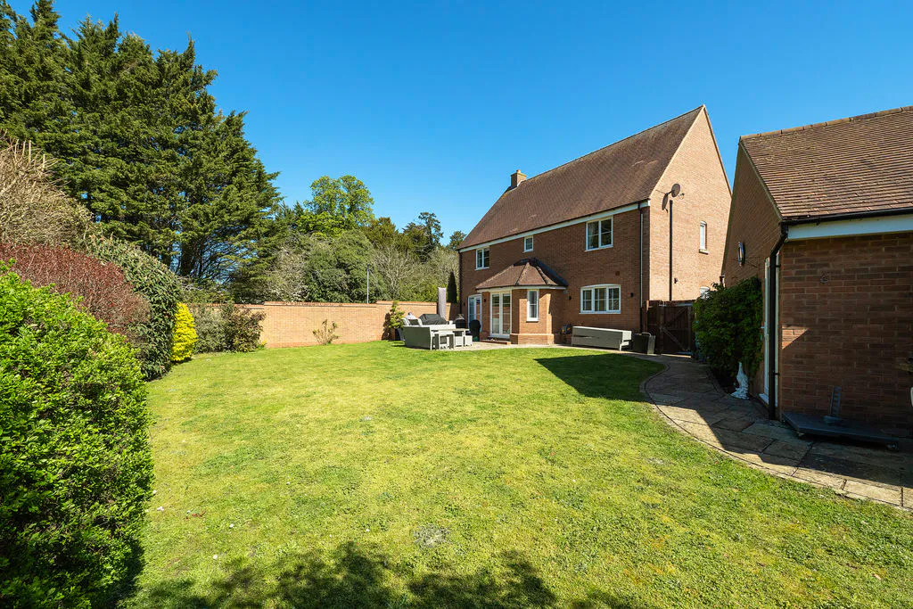 Mainly laid to lawn with flower and shrub beds, patio area, outside tap, garden shed, outside light, gated side access. Door to garage.