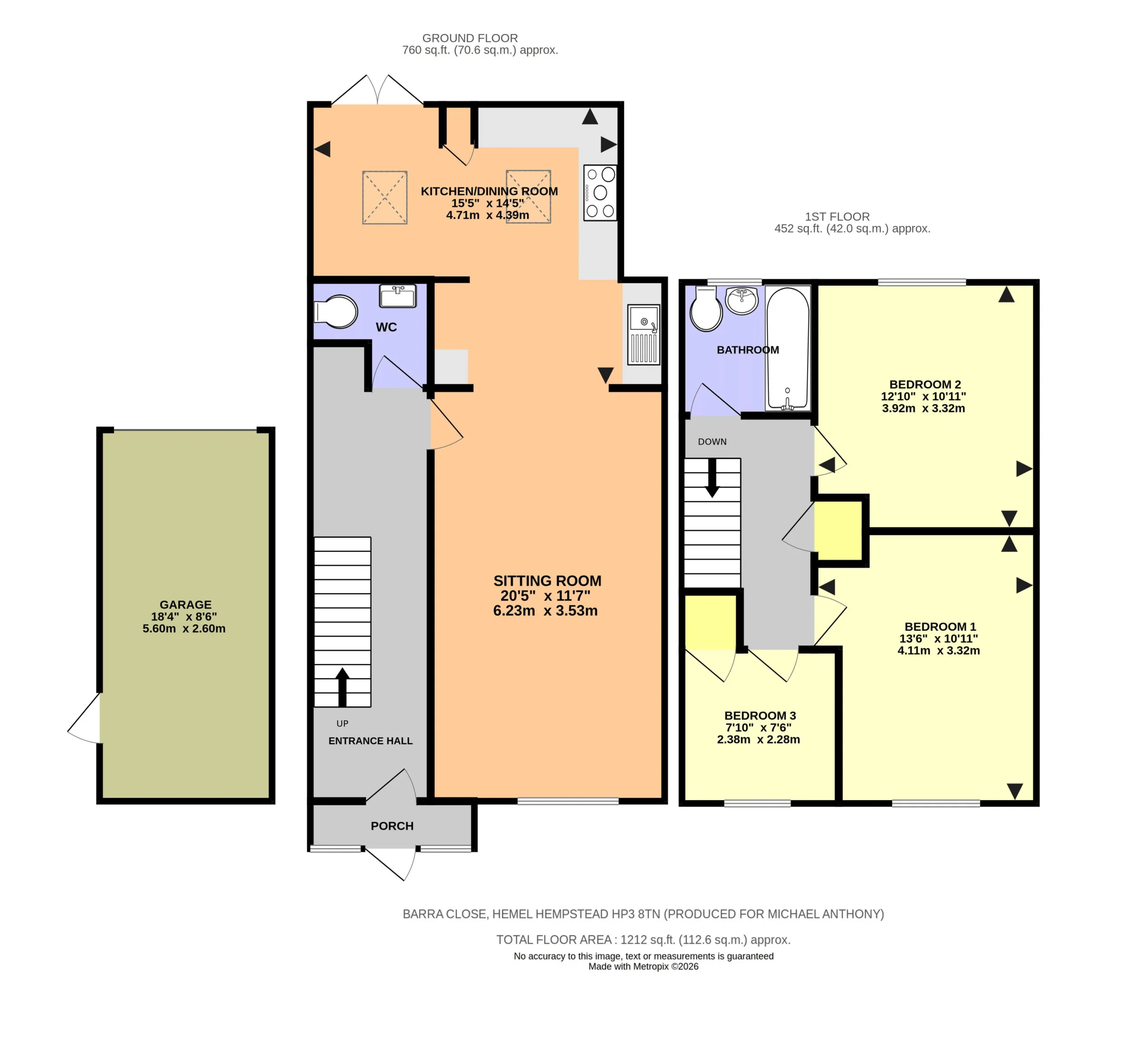 Garage with up and over door, parking to front.