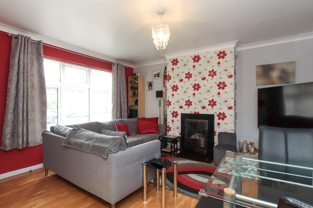 Double glazed window to front, radiator, feature fireplace, storage cupboard.