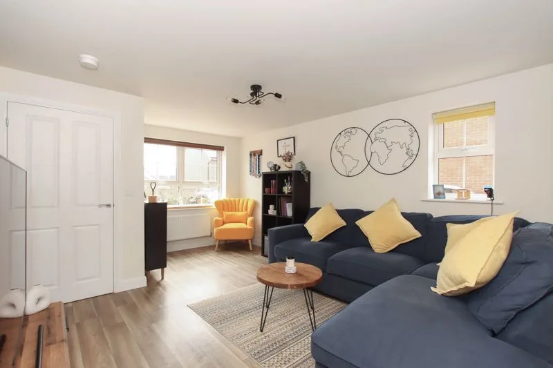 A double aspect room with double glazed windows to front and side aspects. Radiator, stairs rising to first floor, door to: