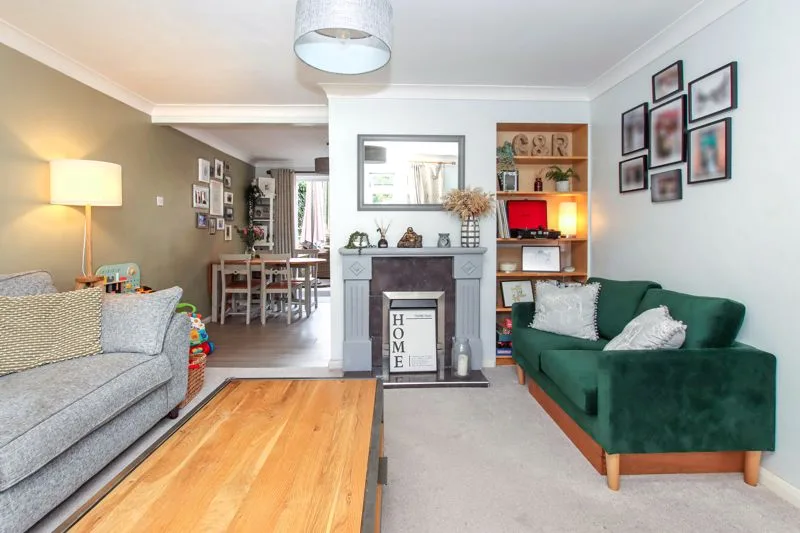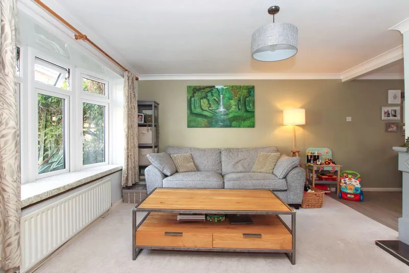 Double glazed bay window to front aspect. Television point, radiator, gas fireplace (capped off) leads into dining area.