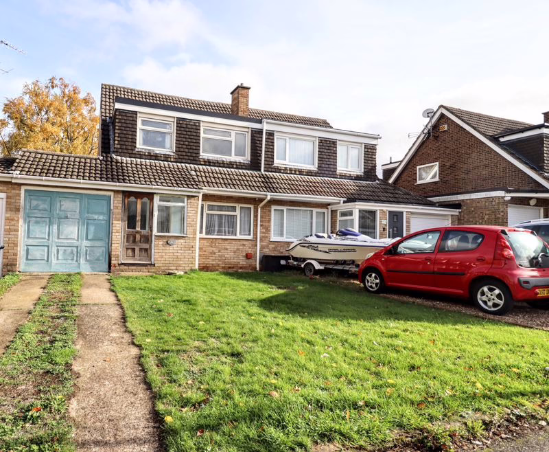 Mainly laid to lawn with off-road parking for two cars.