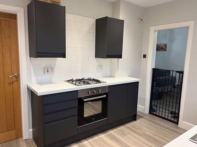 Space for fridge freezer and dryer.