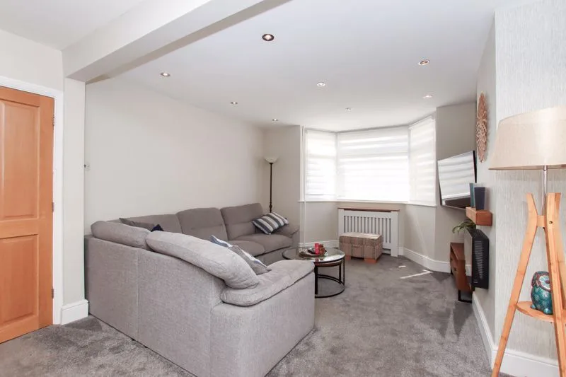 Double glazed bay window to front aspect. Two radiators, electric fireplace, spotlights, glazed double doors to: