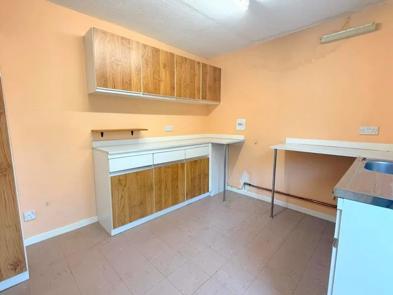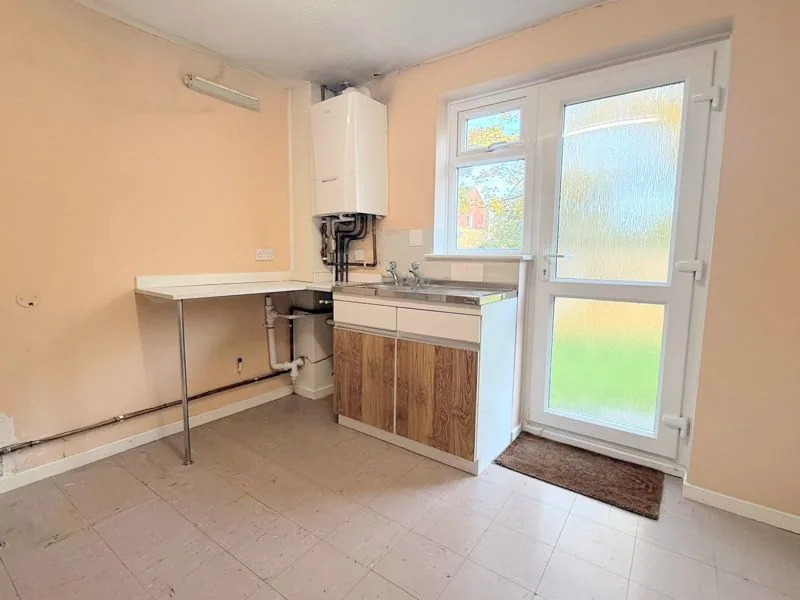 Double glazed window and door to rear. Fitted with a range of base and eye level units with square edge work surface over, single drainer sink unit with hot and cold water taps, radiator, combinaton wall-mounted boiler.