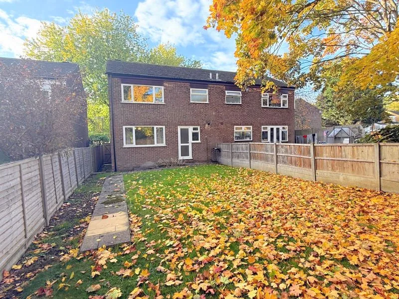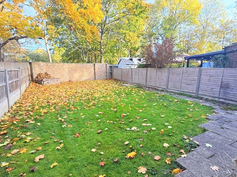 Laid to lawn with side gated access, enclosed by timber fence panelling.