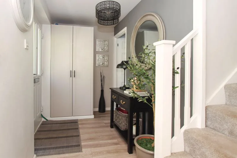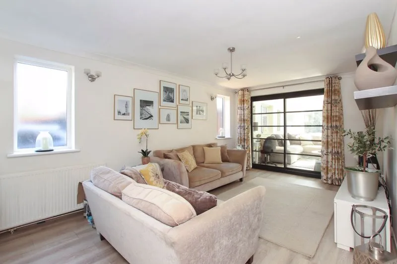 Two double glazed windows to side aspects. Radiator, under stairs storage cupboard, sliding glass doors to sitting room.