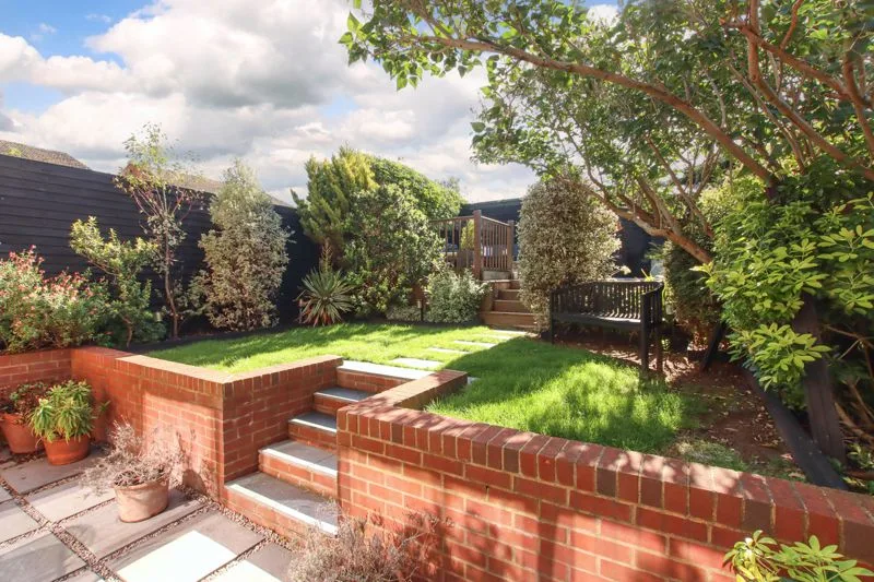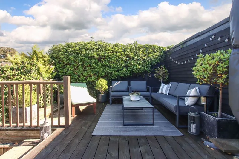 A lovely landscaped southerly facing private garden which has a paved patio area with steps leading to the lawn with further steps to a timber decked patio area, all enclosed by panel fencing. Outside light and cold water tap, gated side access, personal door to garage.