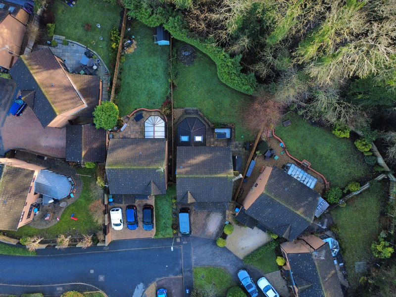 Mainly laid to lawn, patio and mature shrubbed areas, gated side access, shed with lighting.
