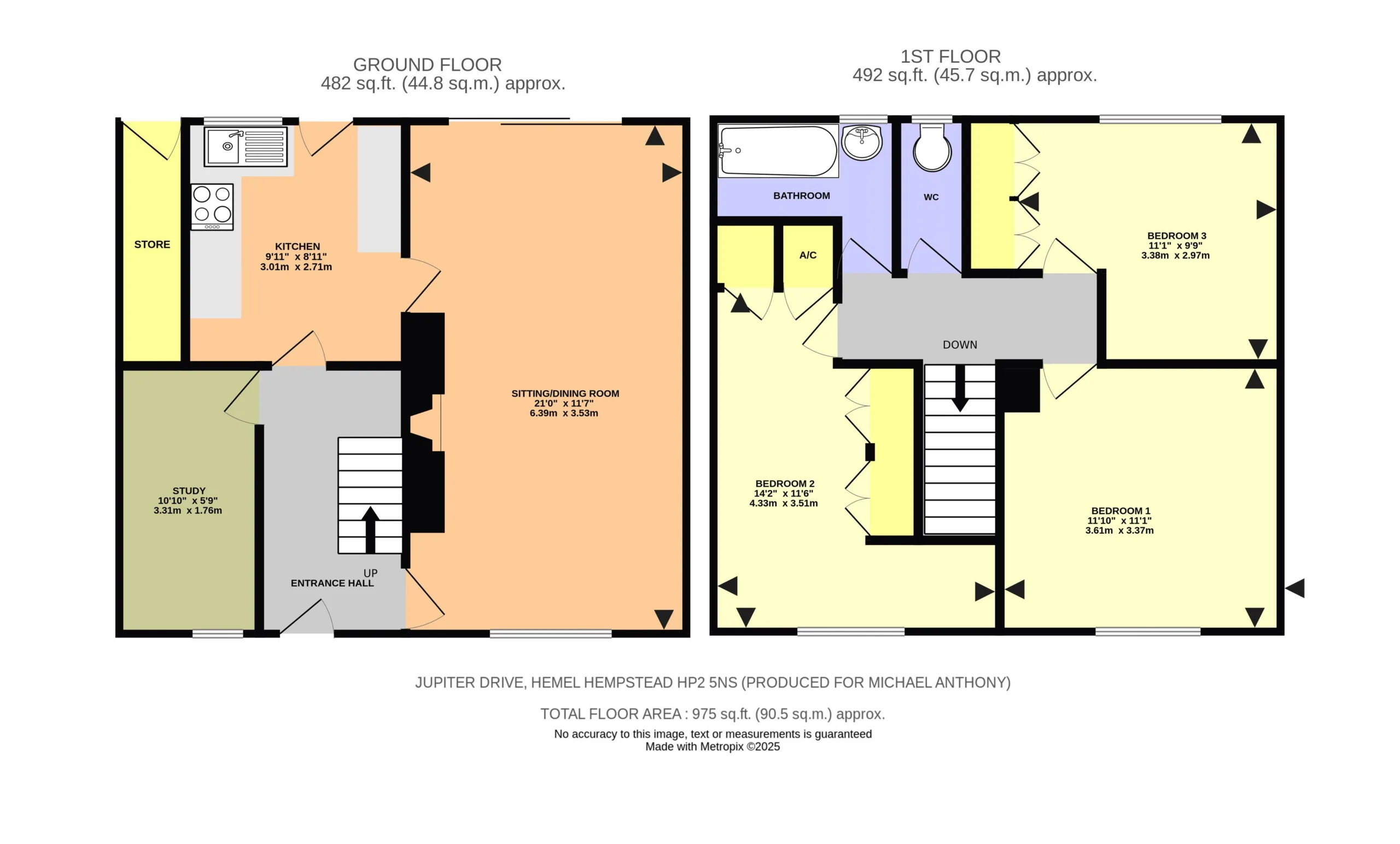 Stairs to first floor, radiator, doors to lounge/diner, kitchen and study.