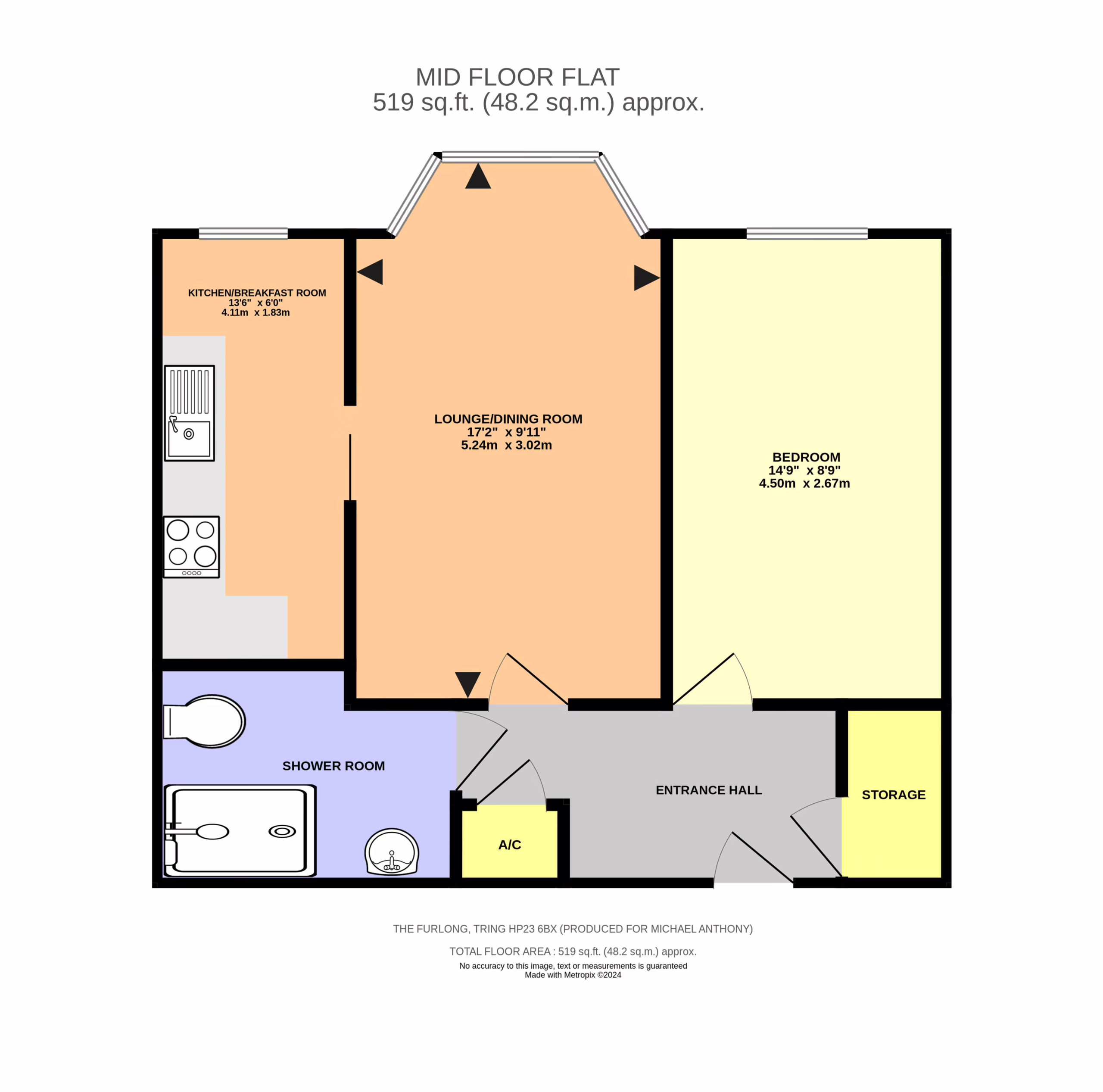 Double glazed window to rear aspect overlooking the gardens towards Tring park. Wall-mounted electric heater.