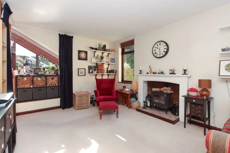 Double glazed windows to side and front aspects. Feature fireplace with wood burning stove, two radiators.