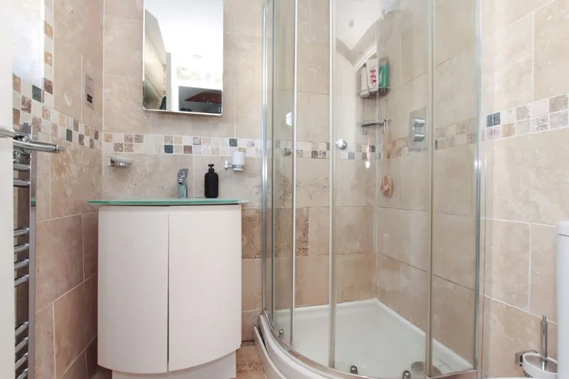 Double glazed window to side aspect. Low level WC, tiled shower cubicle, wash hand basin, heated towel rail.