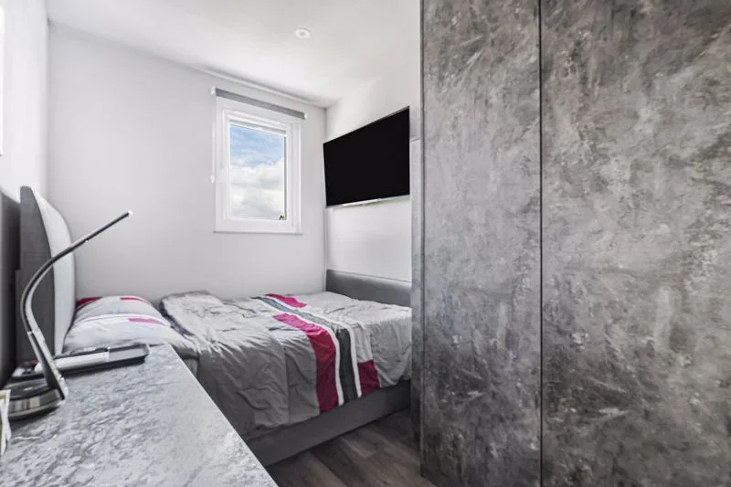 Triple glazed window to rear aspect. Built-in wardrobe, air conditioning unit, radiator, oak door.
