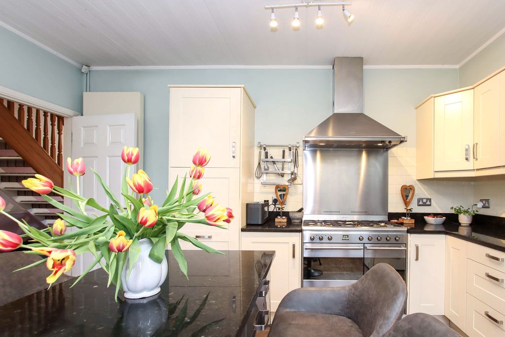Double glazed windows and double glazed doors to rear, wall mounted and floor standing units with work surface areas. Space for range cooker and extractor fan over, space for fridge freezer, two bowl butler sink with mixer tap, wall mounted boiler, plumbing for dishwasher, utility and island.