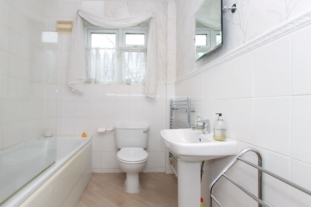 Low level w.c, wash hand basin, double glazed frosted window to rear, heated towel rail.