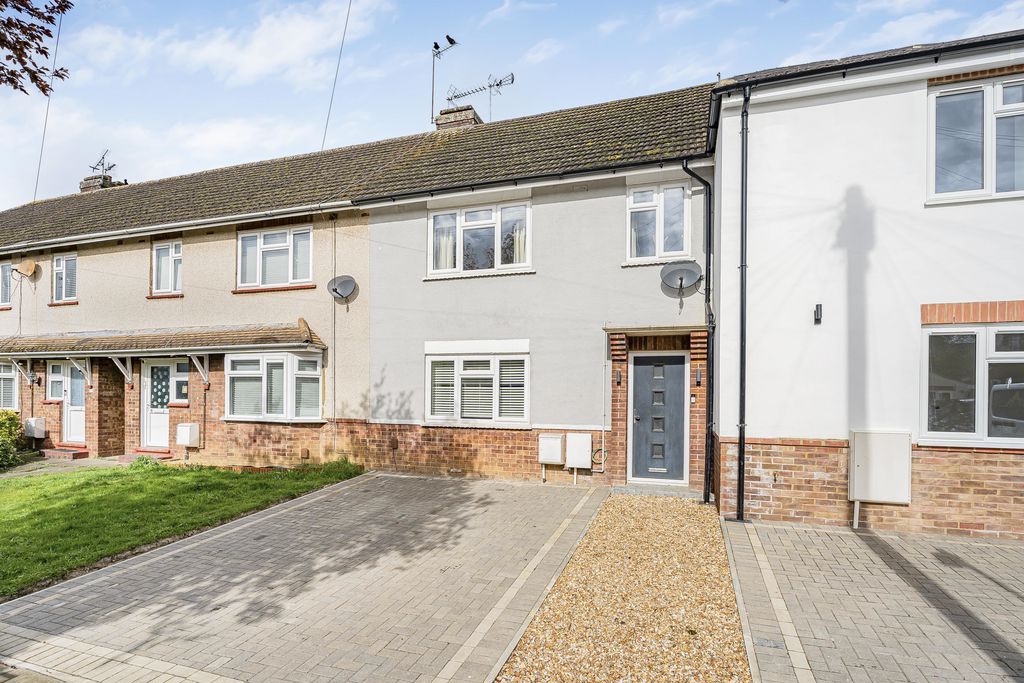 Block paved with gravel path to front door.