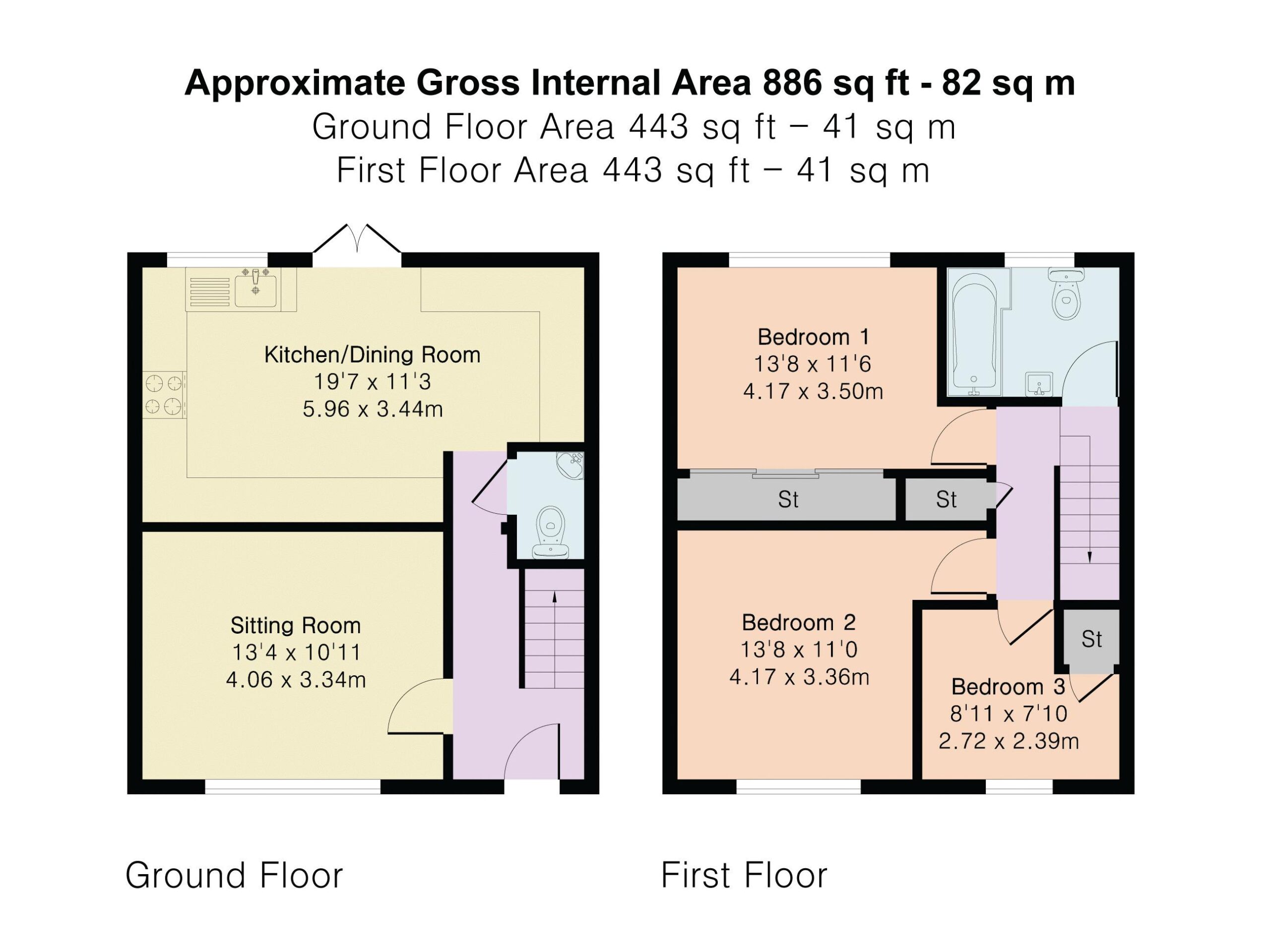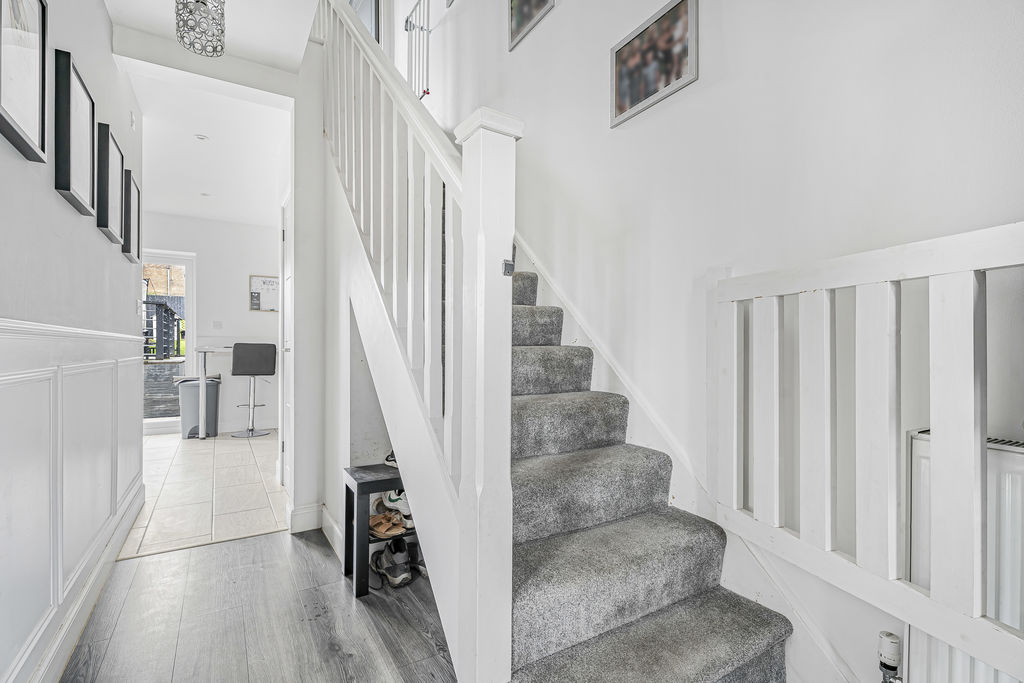 Stairs to first floor, radiator, doors to cloakroom and lounge, open to kitchen.