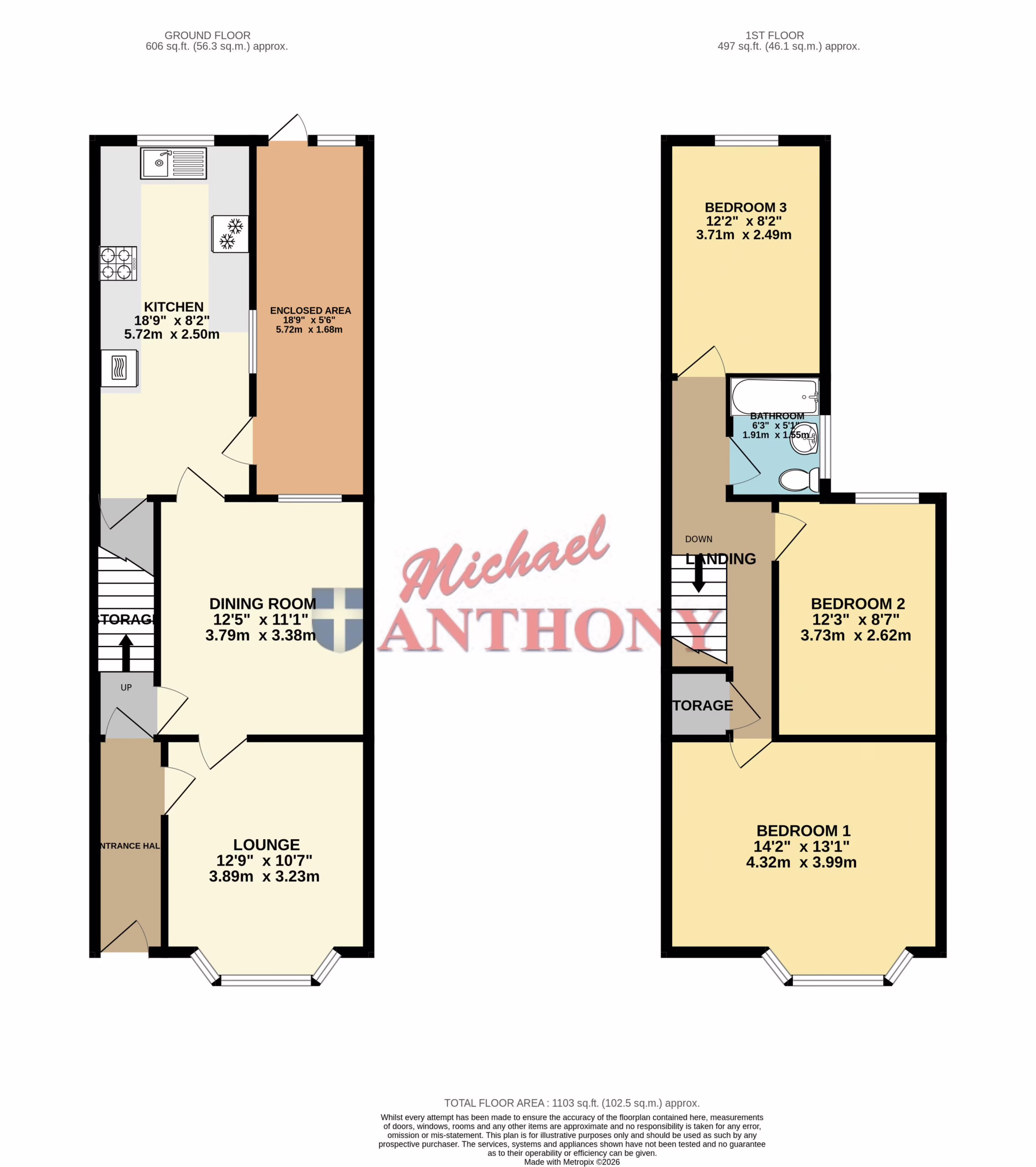 Access to loft space, door to storage cupboard, doors to bedrooms and bathroom.