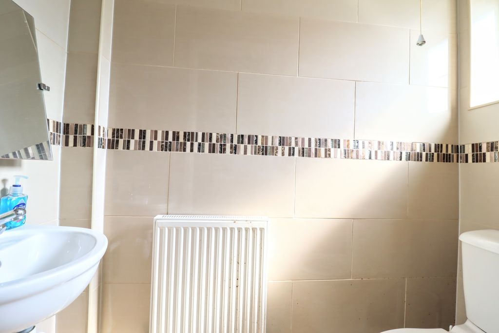 Frosted double glazed window to front. Radiator, low level w.c, hand wash basin with mixer tap, fully tiled walls.
