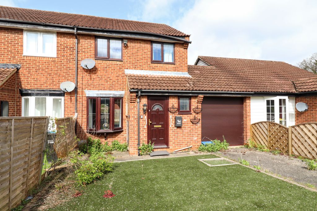 Laid to artificial grass, decking area, raised borders, enclosed by timber fencing panels, courtesy door to garage, outside tap.