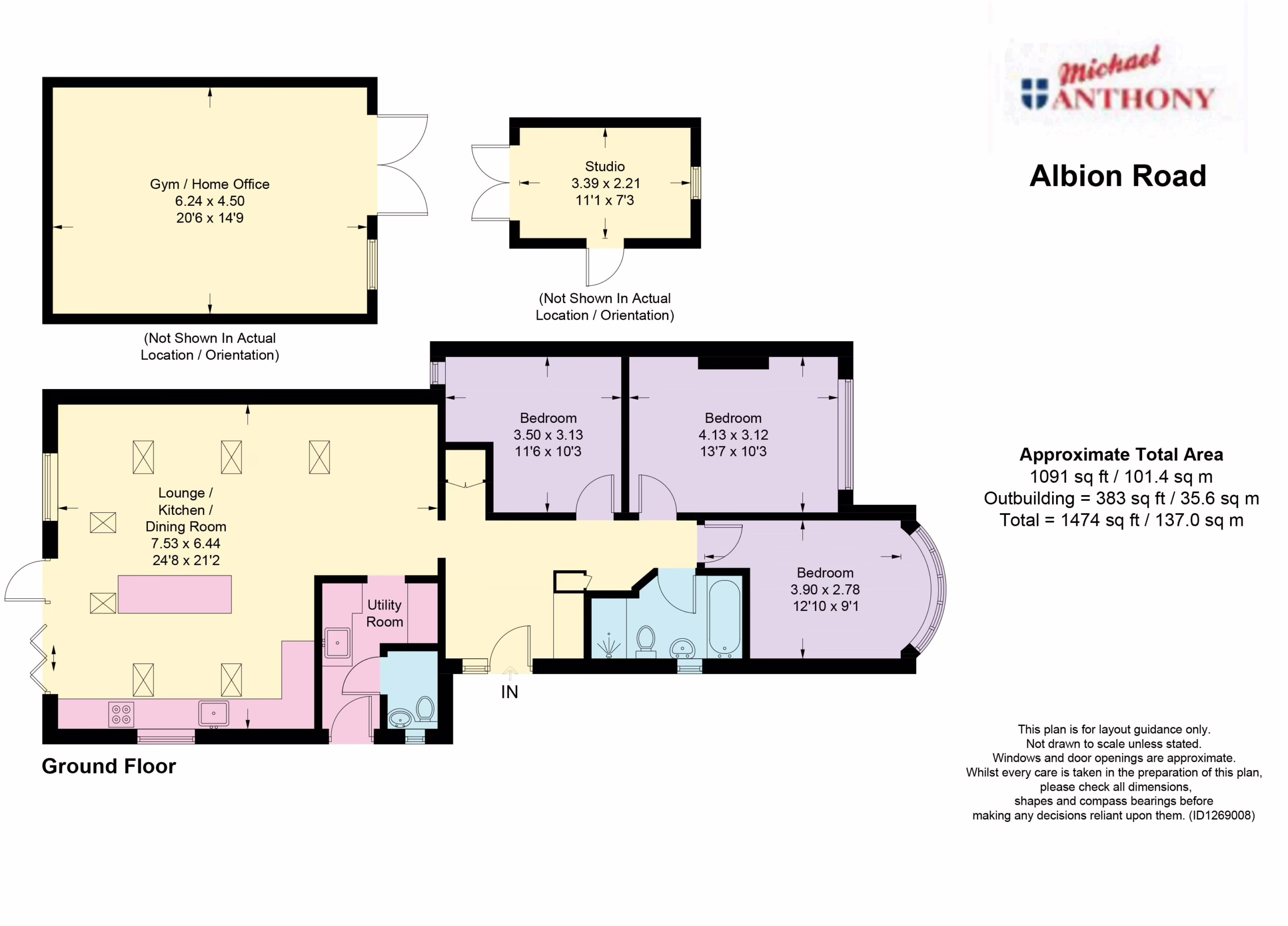 Mainly laid to lawn with flower and shrub beds, patio area, raised beds, gated side access, timber storage shed, additional timber studio with power and lighting currently used as a workshop and gym.