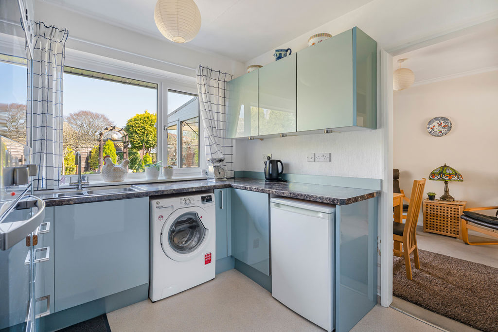 Double glazed window to rear aspect. Range of wall mounted and floor standing units with work surface over, one and a half stainless steel sink, integrated oven and hob with extractor fan over, space for washing machine and small fridge/freezer.