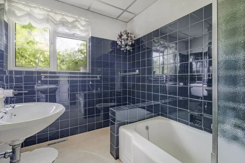 Frosted double glazed window to rear aspect. Wash hand basin, low level w.c., bidet, sunken bath and shower attachment, part tiled walls, warm air vent.