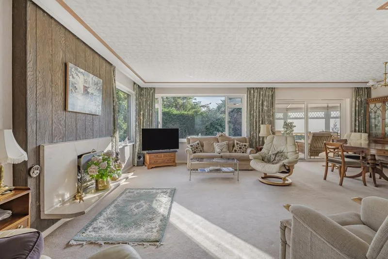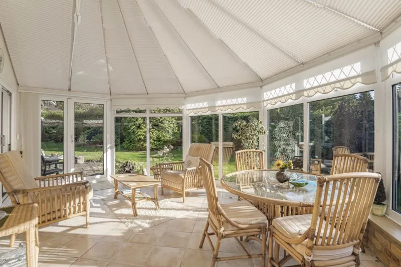 Two double glazed windows to side and rear aspects, sliding patio doors to conservatory, door and serving hatch to kitchen, three warm air vents.