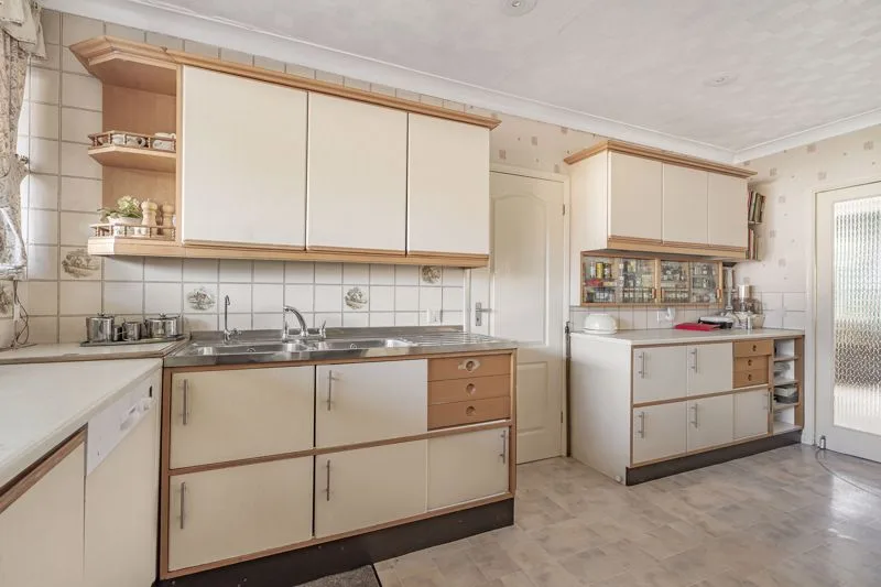 Double glazed window to front aspect, door to utility room, door to lounge/diner, single glazed window to utility room. Range of wall mounted and floor standing units with roll top work surface, two stainless steel sinks with mixer tap, integrated double oven and microwave, integrated electric hob, integrated dishwasher.