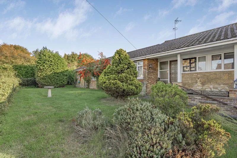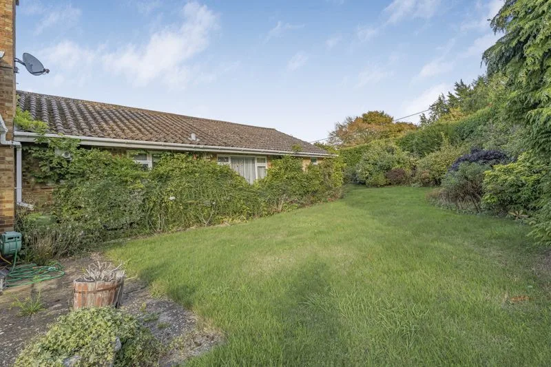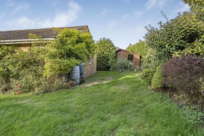 Mainly laid to lawn, bush and tree borders, patio area, water feature, shed.