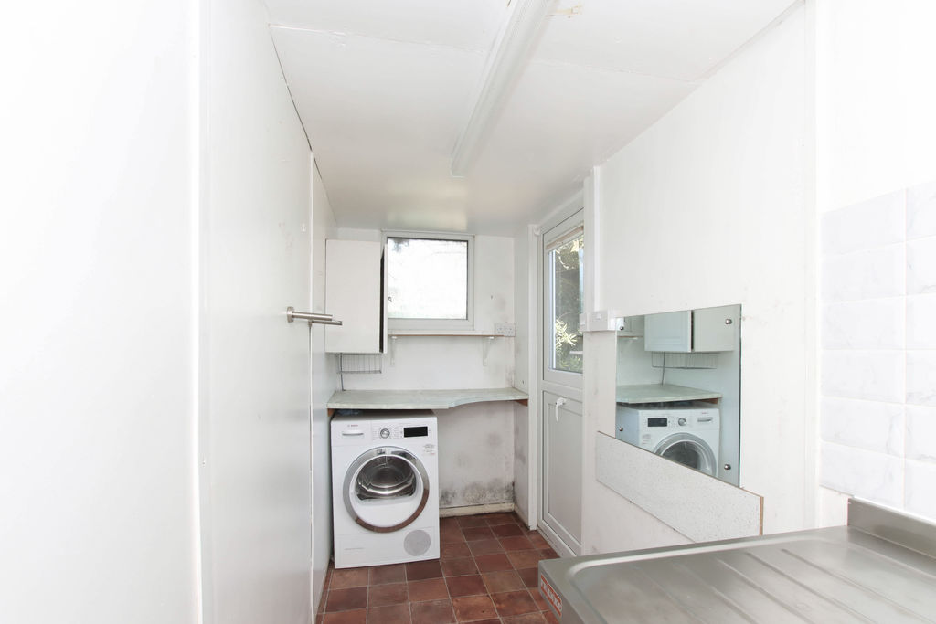 Double glazed window to side, frosted double glazed window to rear. Stainless steel sink with mixer tap, space for dryer.