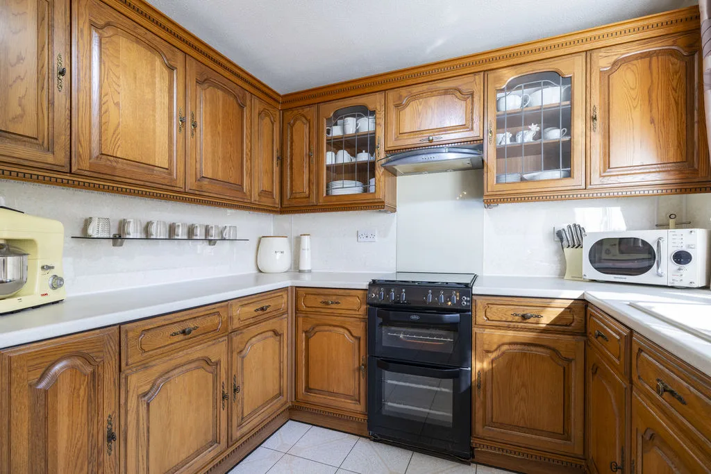 Double glazed double doors to rear, double glazed windows to side and rear. Space for washing machine and tumble dryer, rolled edge work surface, tiled floor, electric radiator.