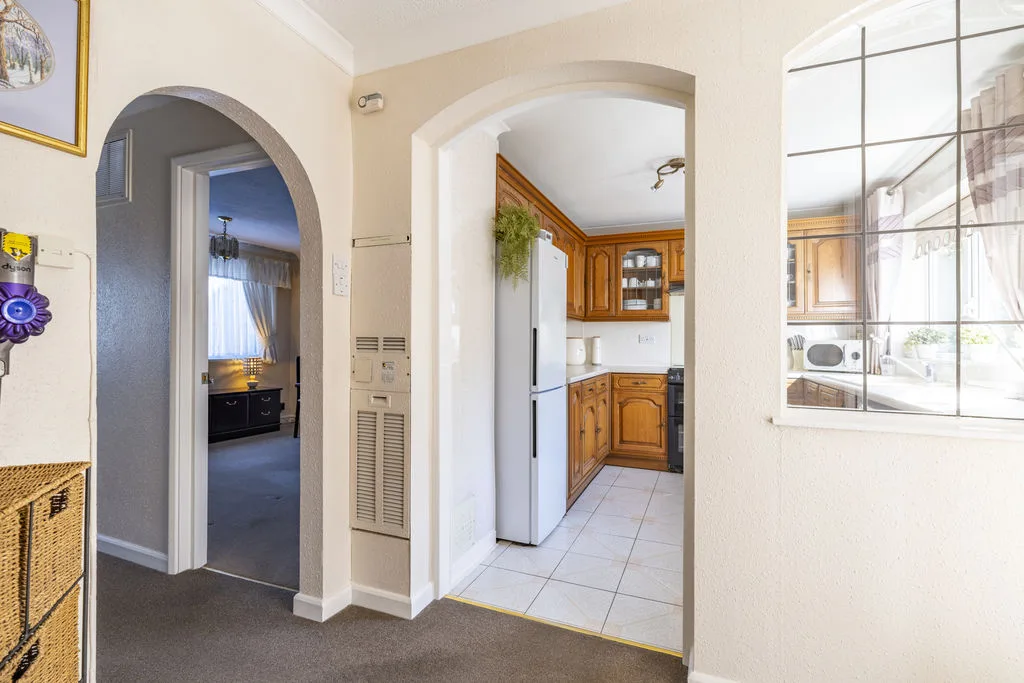 Frosted double glazed door to entrance porch. Glass double doors to entrance hall, frosted double glazed windows to front and side aspects.