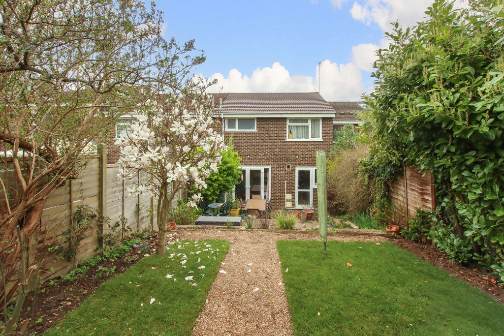 A fully enclosed southerly facing rear garden, screened by panel fencing with gated rear access, set over three tiers with two paved areas and a lawned area, surrounding borders, outside cold water tap and lighting.