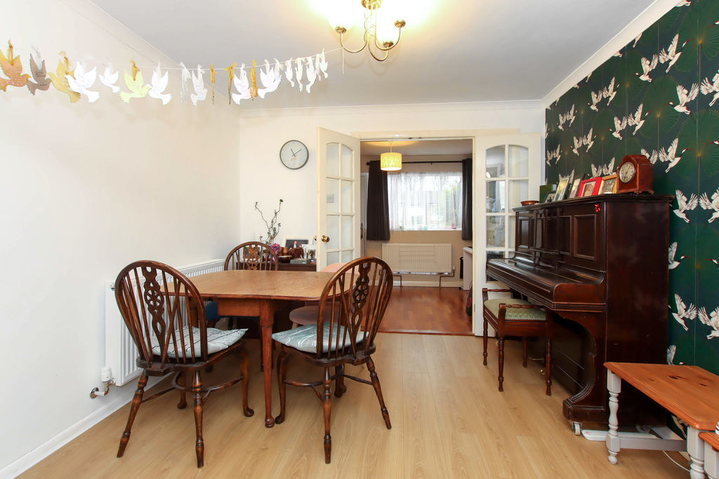 Glazed doors from the entrance hall, radiator, wood effect flooring.