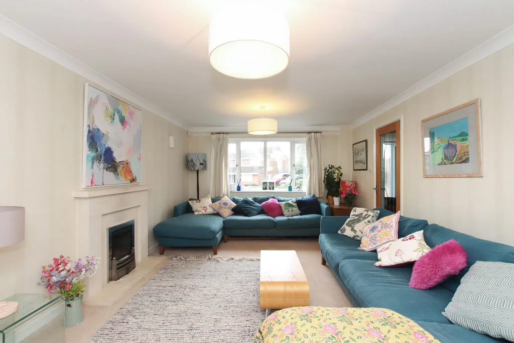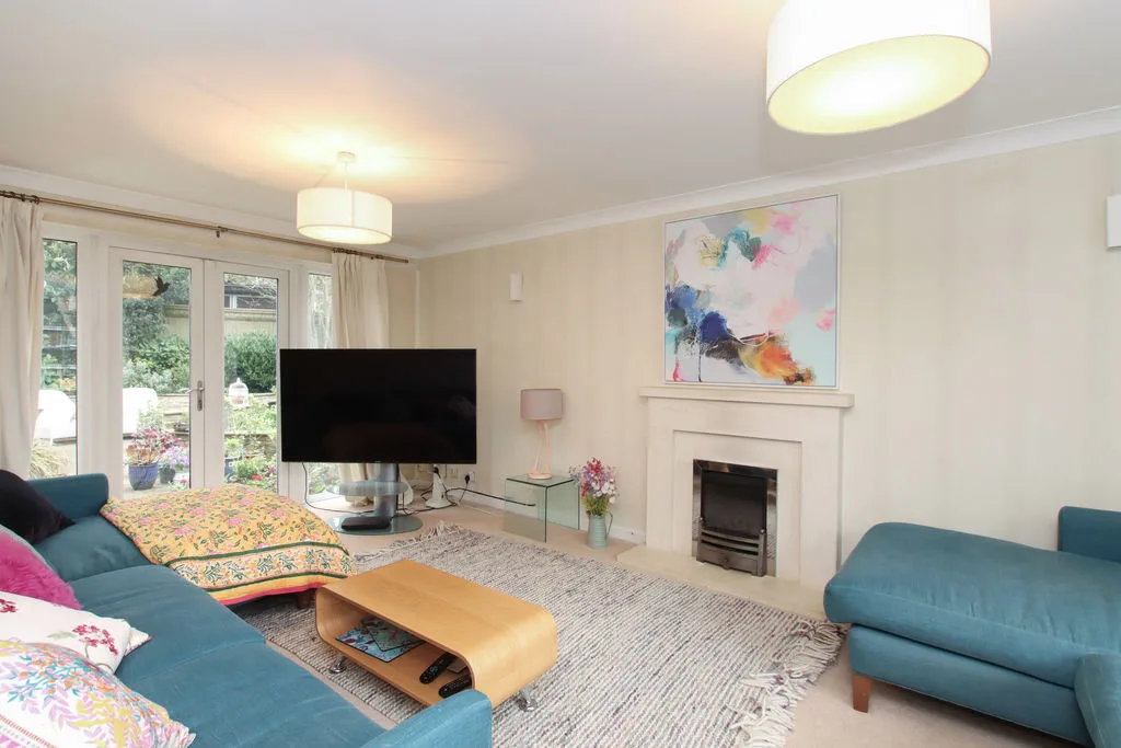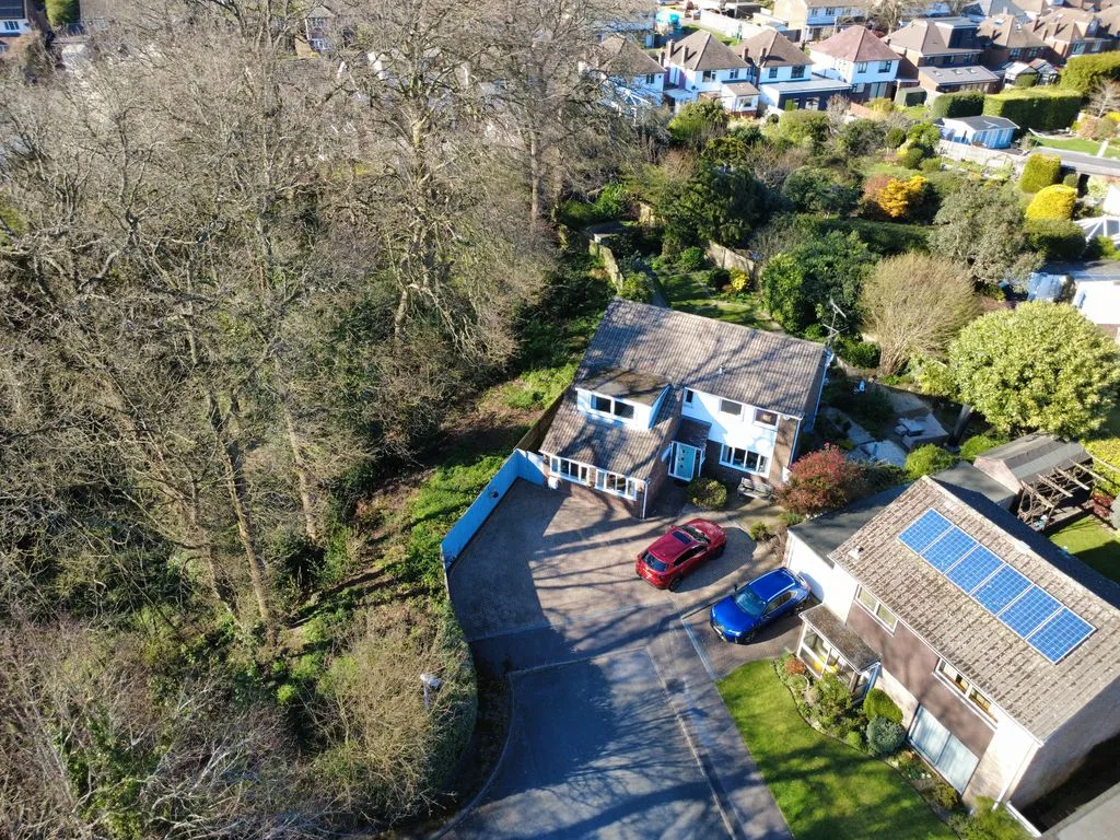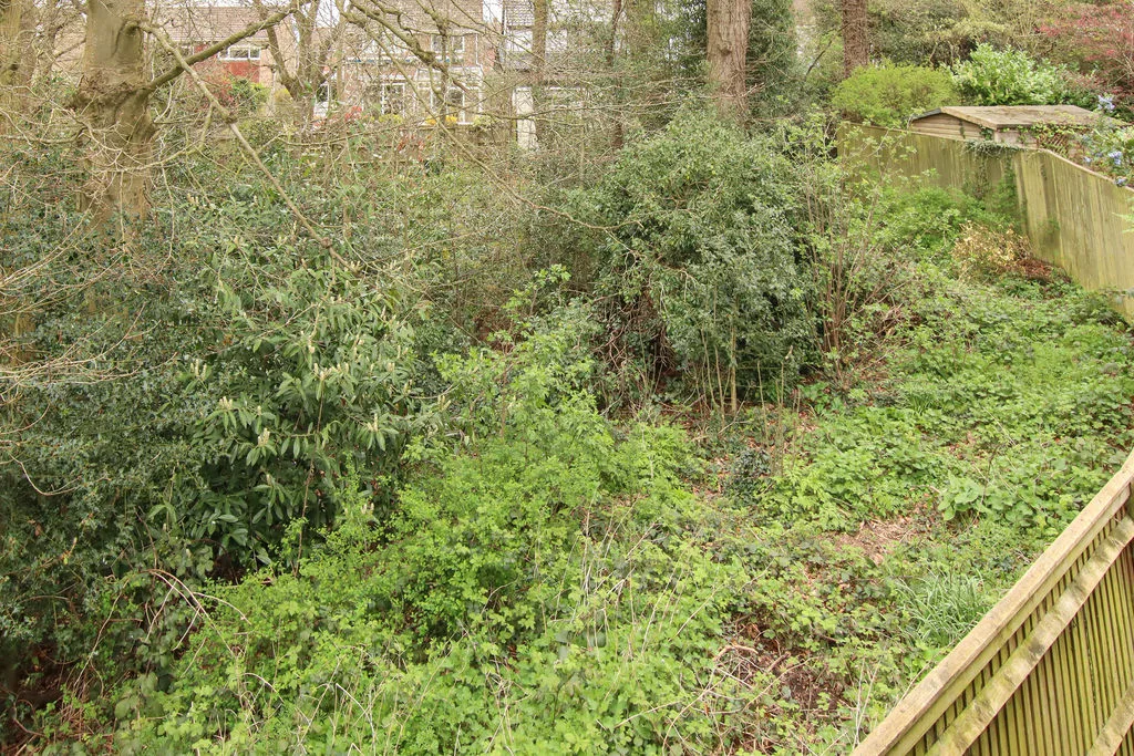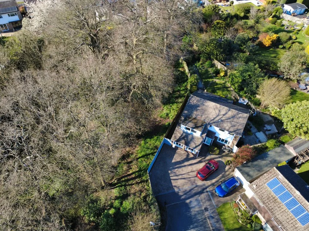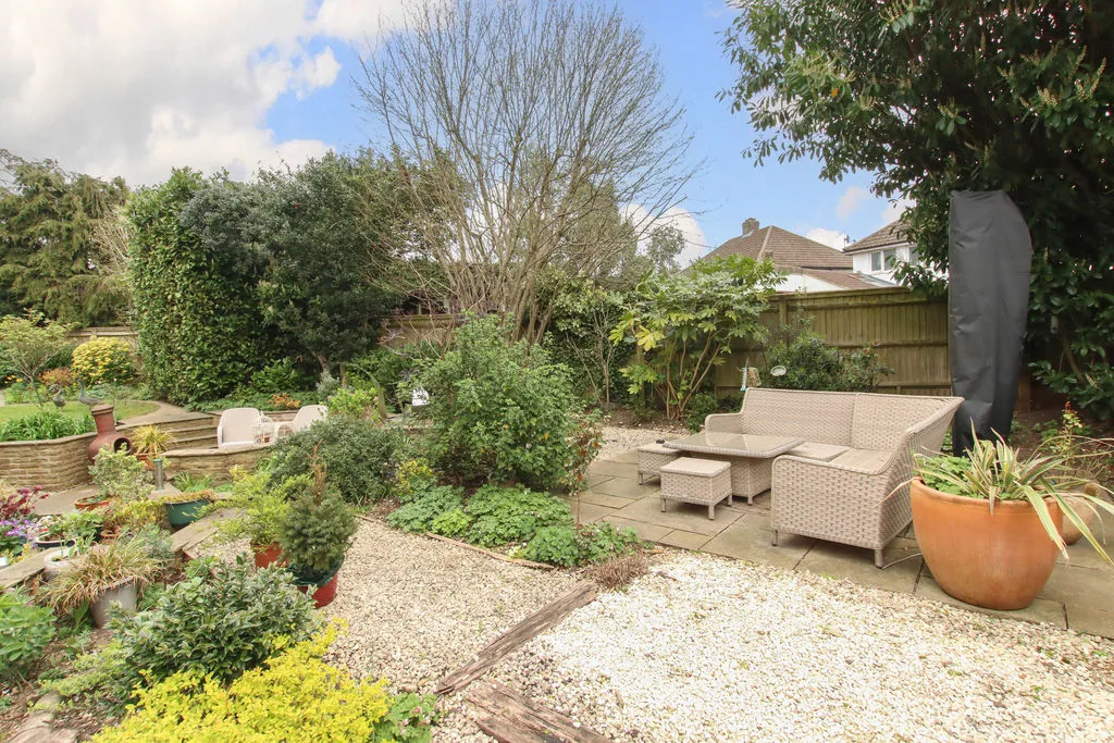 Beautifully landscaped wrap around garden, comprising various patio areas, mature flower and shrub beds, hedging and trees with access to an adjoining woodland with a variety of mature trees.