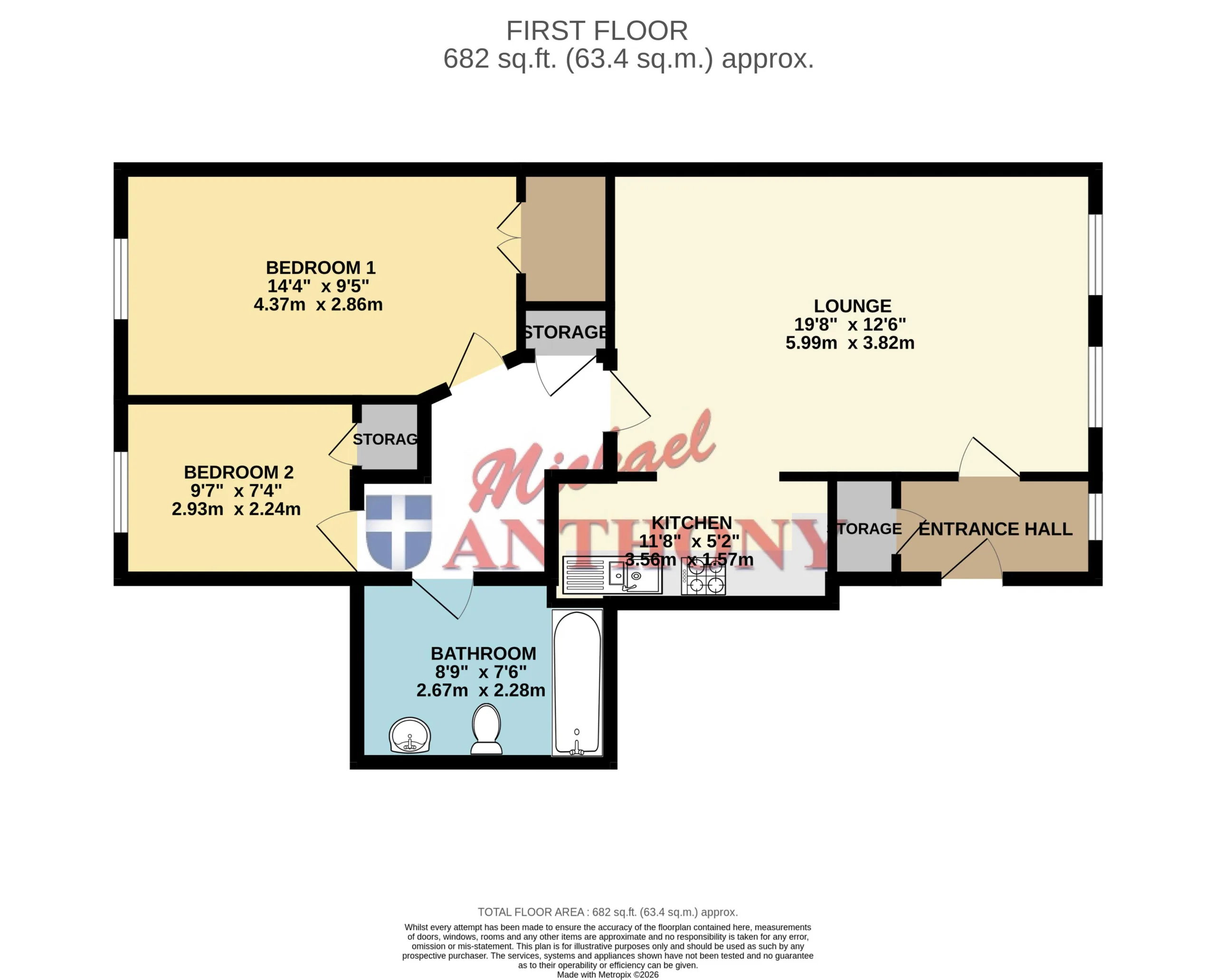 Double glazed window to side aspect. . Electric heater, door to storage and door to lounge, wall mounted alarm and intercom.