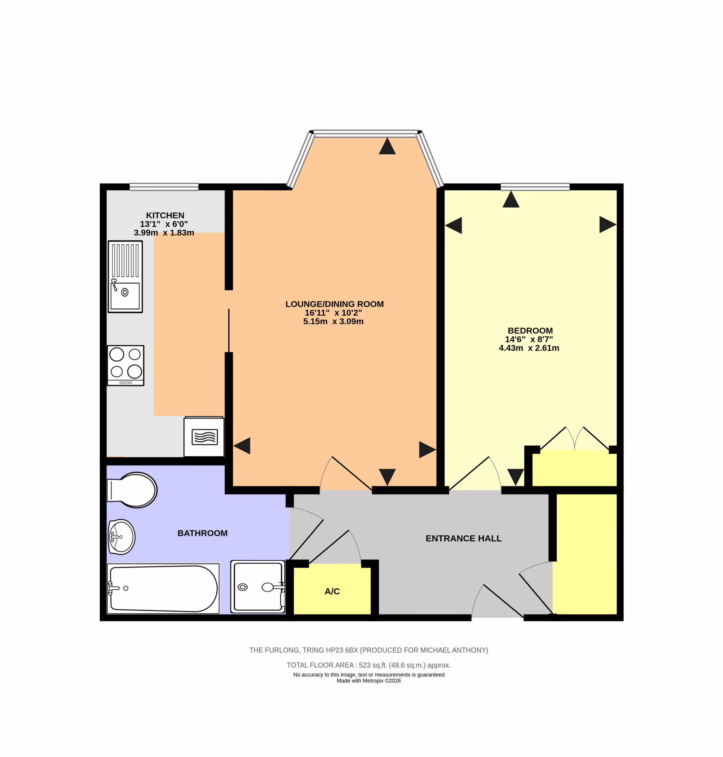 Double glazed bay window to rear overlooking communal gardens. Wall mounted electric heater. TV point. Opening to