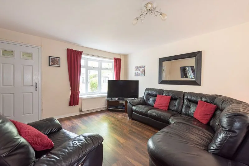 Double glazed bay window to front. Stairs to first floor with storage cupboard below. Two radiators. Archway to kitchen/dining room.