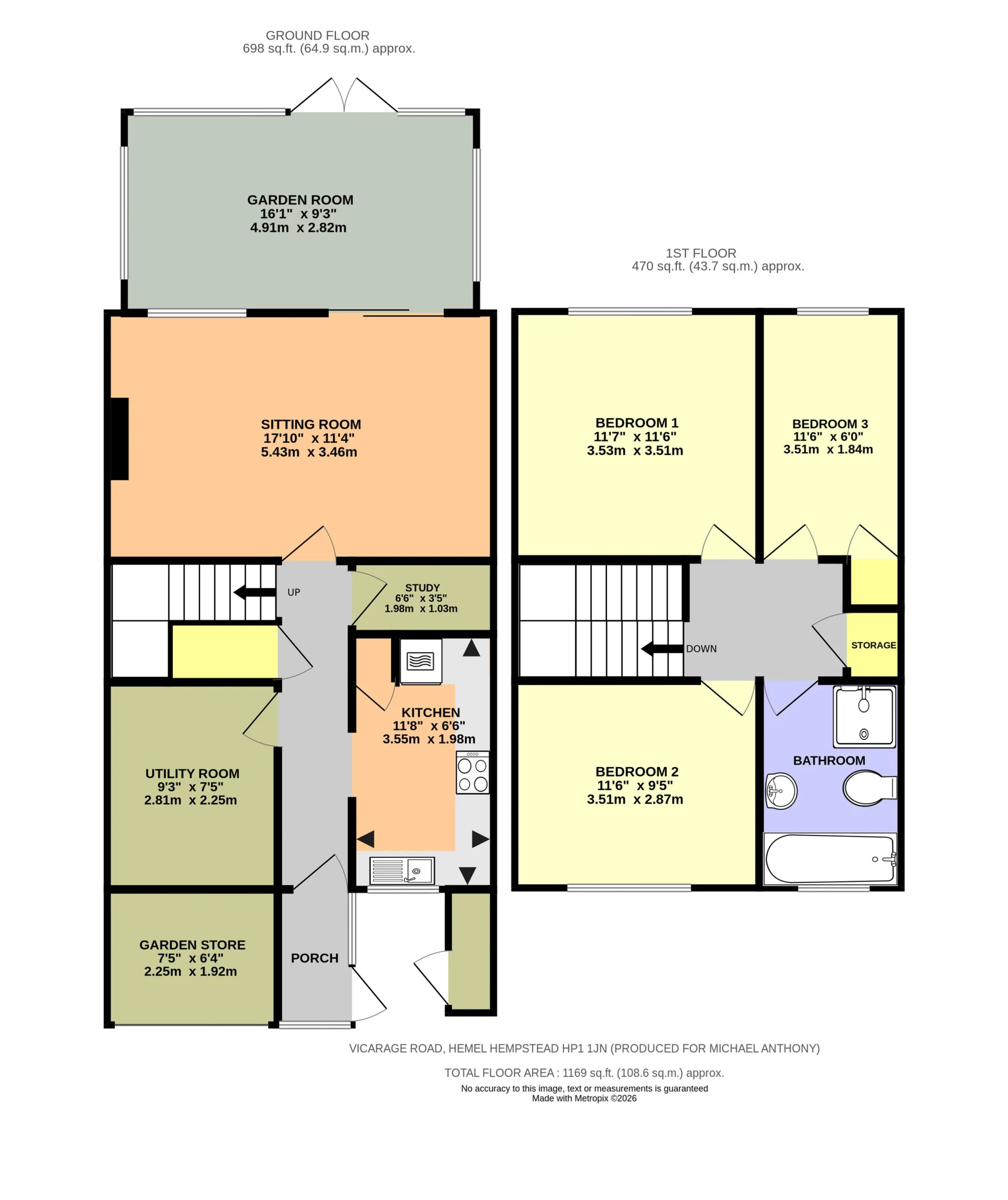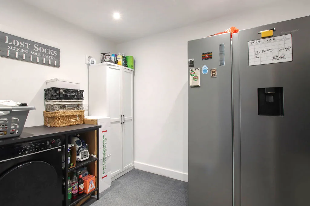 Door to utility, door to kitchen, door to living room, door to study, storage cupboard, radiator.