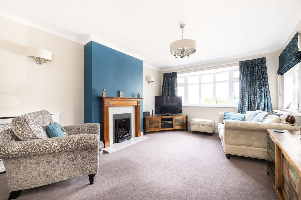 A double aspect room with double glazed bay window to front aspect and double glazed window to side aspect. Feature fireplace, two radiators.
