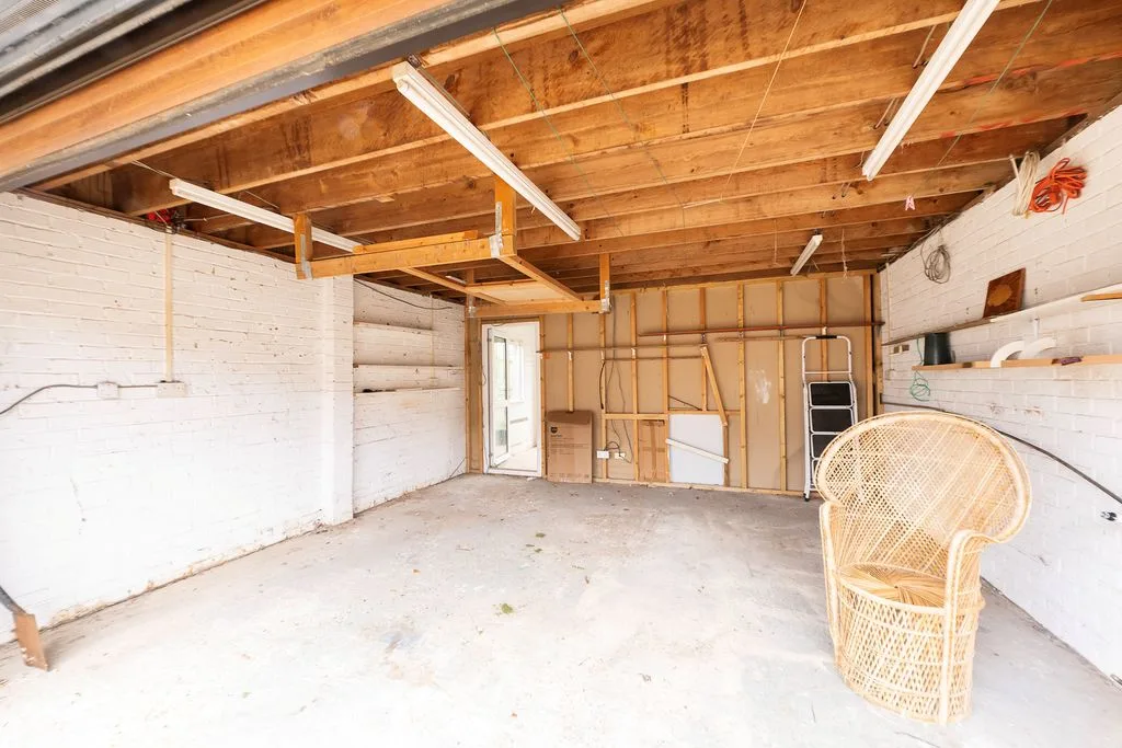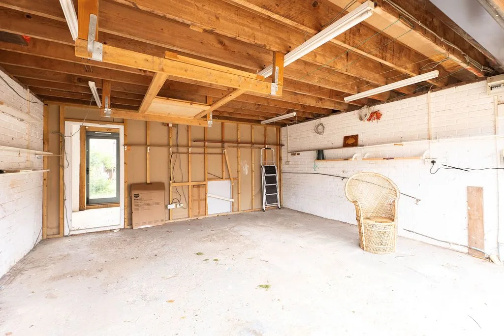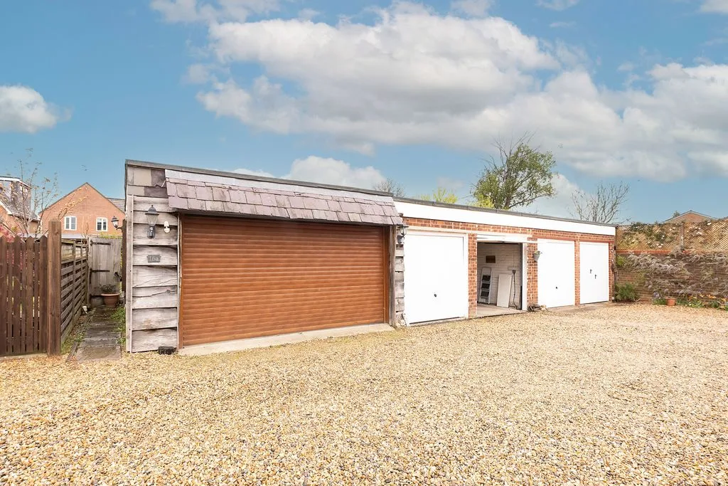 Double glazed windows to side and rear. Electric roll top door, door to workshop. bi-fold doors to rear, low level base units and wall mounted units. Parking space for one car.