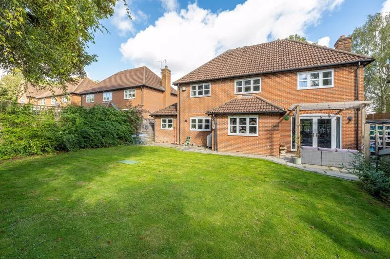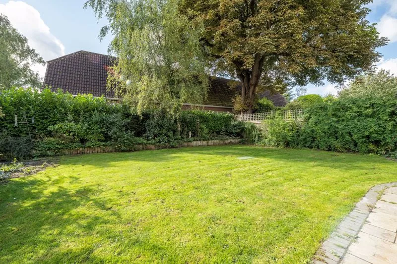 Mainly laid to lawn with patio area, flower and shrub beds, outside light, outside tap, pond, shingled area.