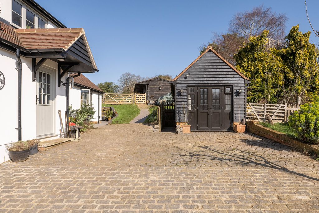 Accessed via double gates the block paved driveway provides parking for several cars.