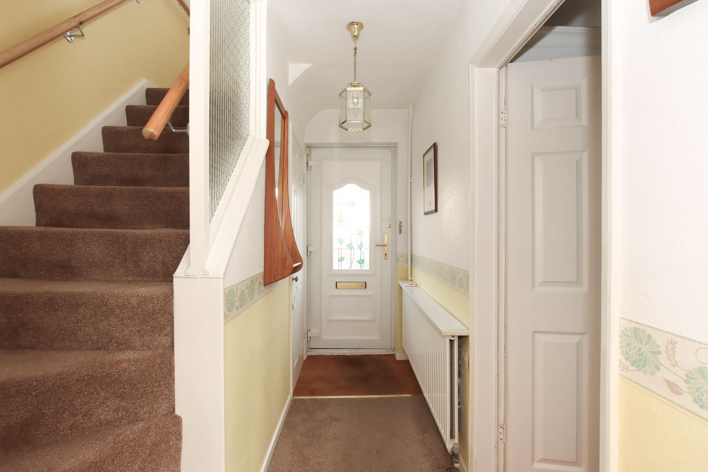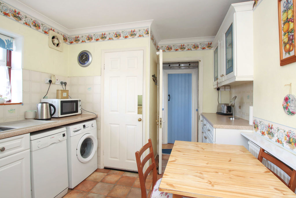 Door to front, door to cloakroom, storage cupboard, space for fridge, space for freezer, door to rear garden.