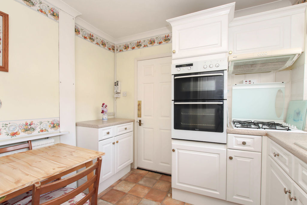 Double glazed window to front, gas hob with extractor fan over, built in oven, 1 1/2 bowl sink with drainer, space for dishwasher, space for washing machine, radiator, storage cupboard, range of floor and wall mounted units.