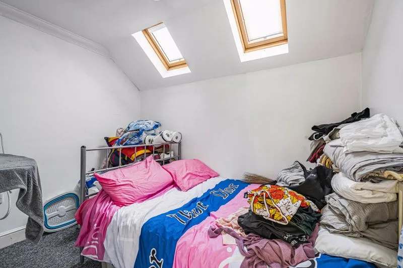 Double glazed window to side aspect, balcony. Radiator, three built-in wardrobes, access to loft space.