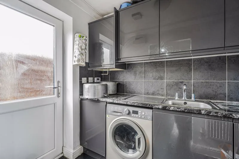 Double glazed window to rear aspect. Fitted with a range of base and eye level units with square edge work surface over, splashback tiling, plumbing for dishwasher, one and a half bowl and drainer unit with mixer tap, oven and gas hob with extractor overhead, radiator, space for fridge freezer.